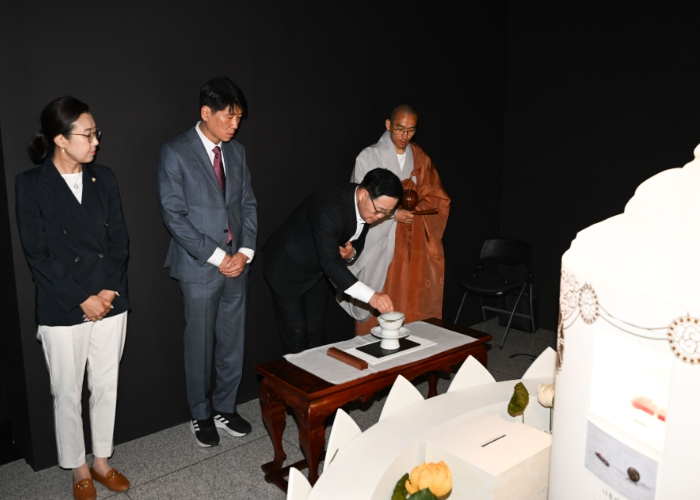 [뉴스서울] 강수현 양주시장이 21일 오전 양주시립 회암사지박물관 1층 전시실에서 개최된 ‘회암사 사리 친견행사’ 개막 예불식에 참석했다.
