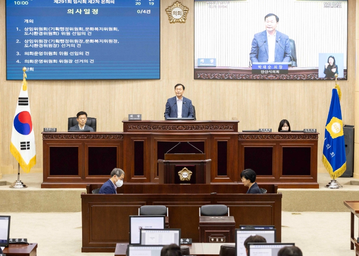 | ▲ 안산시의회 의원들이 9대 후반기 의회 출범을 알리는 소통 행보를 시작했다. 제291회 안산시의회 임시회 제2차 본회의 |