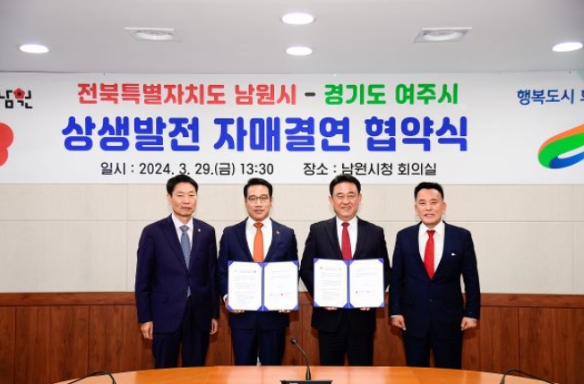 [뉴스서울] 경기 여주시는 전북특별자치도 남원시와 상생발전을 위한 자매결연을 맺었다고 29일 밝혔다.