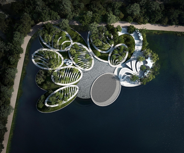 박윤진 대표와 김정윤 하버드 GSD 교수가 2004년 설립한 오피스박김(Office ParkKim)은 ‘물 위의 언덕’을 콘셉트로 주변 산으로부터 내려온 언덕이 마치 꽃잎처럼 물 위에 떠 모여 있는 형상의 수상공연장을 구상했다.