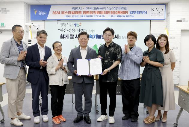 시는 23일 한국대중음악상선정위원회와 ‘2024 페스티벌광명 광명음악명예의전당 업무협약’을 맺었다.