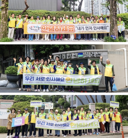 [뉴스서울] 대전 대덕구는 (사)대덕구자원봉사센터와 보람 아파트 봉사단, 선비 1단지 아파트 봉사단, 한신휴플러스 아파트봉사단이 21일 사부작사부작 운동의 일환으로 인사하기 캠페인 ‘내가 먼저 인사해요’를 진행했다고 밝혔다.