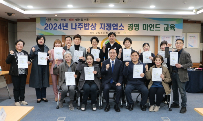 전라남도 나주시는 지난 18일 시청사 이화실에서 나주밥상 지정업소 15곳 업주를 대상으로 경영마인드 교육을 가졌다고 20일 밝혔다.