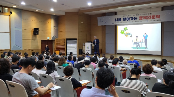 이날 강단에 선 김종배 수성대학교 사회복지과 교수는 ‘인문학을 통한 삶의 행복 찾기’를 주제로 행복한 웃음과 소통, 우리 삶에 대한 동기부여, 상대방을 바라보는 시각 변화 등을 다뤘다.