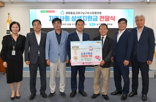 [뉴스서울] 새마을금고 대구남구이사장협의회는 25일 새마을금고 창립기념일인 동시에 ‘MG새마을금고 지역상생의 날’을 기념하여 새마을금고중앙회의 상생지원금 250만원을 대구 남구에 전달했다.