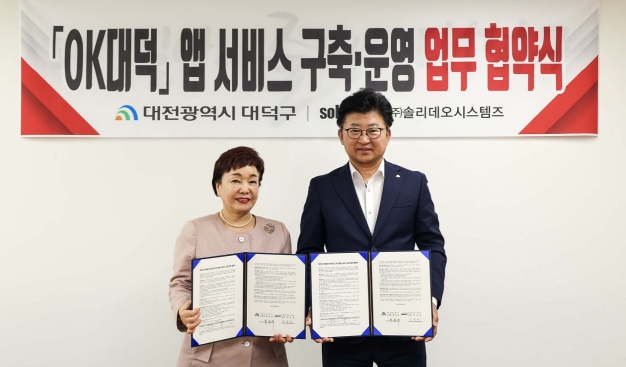 [뉴스서울] 대전 대덕구는 지난 20일 대덕구청 구민의 사랑방에서 민원인이 핸드폰으로 공문 수령 및 민원 접수가 가능한 ‘OK대덕’ 어플리케이션 서비스를 구축 ·운영하기 위해 (주)솔리데오시스템즈와 업무협약을 체결했다고 밝혔다.