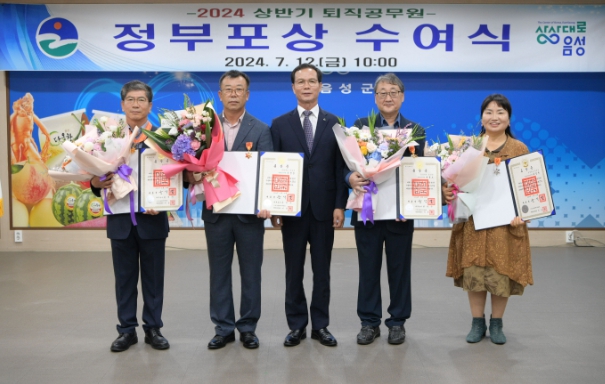 [뉴스서울] 음성군은 12일 군청 상황실에서 2024년 상반기 퇴직공무원 8명에게 훈·포장 및 표창을 전수했다.