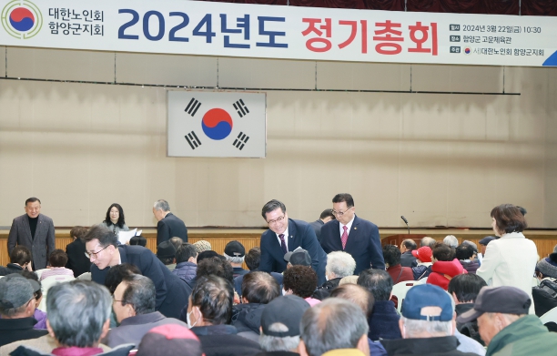 [뉴스서울] 대한노인회 함양군지회는 22일 오전 고운체육관에서 진병영 함양군수, 박용운 함양군의회 의장을 비롯한 기관단체장 및 각 경·노모당 대의원 등 모두 400여 명이 참석한 가운데 ‘2024년 정기총회’를 개최했다.
