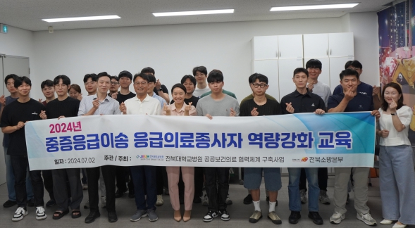 [뉴스서울] 전북특별자치도소방본부와 전북대학교병원이 119구급대원의 전문성 강화를 목표로 현장에서 신속하고 정확한 응급상황 대처능력을 향상시키기 위해 지난 2일 전북대학교 간호대학에서 '중증응급이송 응급의료종사자 역량강화 교육'을 실시했다.