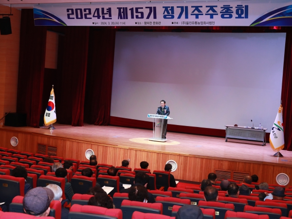 ㈜울진유통농업회사법인 제15기 정기주주총회의 주요 안건은 2023년도 결산 승인 건과 주식 배당금 주당 400원(배당률 4%) 현금 배당 승인 건, 이사․감사 선임 건이다.