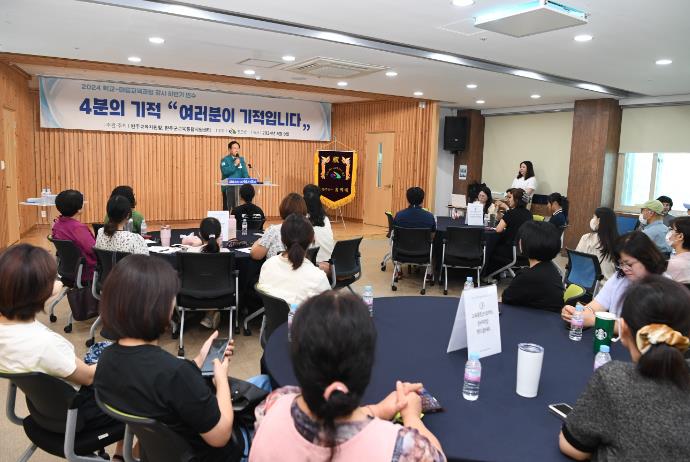 [뉴스서울] 완주군교육통합지원센터가 완주군가족문화교육원에서 9일 학교-마을 교육과정 31개 참여기관의 소속 마을강사 100여 명이 참석한 가운데 마을강사 하반기 연수를 실시했다.