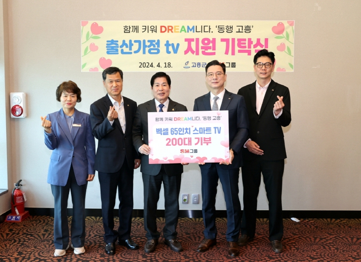 [뉴스서울] 고흥군은 지난 18일 고흥 썬밸리 리조트에서 SM그룹과 65인치 TV 200대(1억 5천만 원 상당) 기탁식을 가졌다.