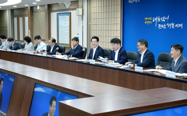 [뉴스서울] 김영록 전라남도지사는 27일 쌀값 폭락과 고수온 피해 등에 대한 보다 근본적인 대책 마련과 고층건물 화재 시 안전한 탈출 훈련 강화 등 현안문제에 대한 해결책을 모두 재검토해 철저히 대응할 것을 지시했다.