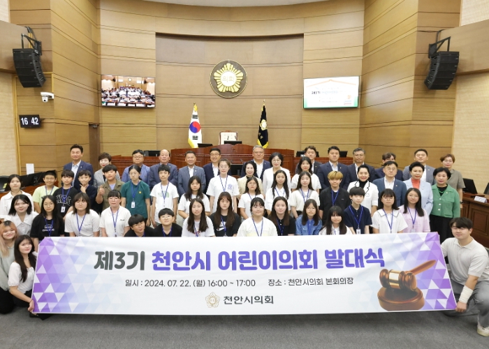천안시의회는 2024년 제3기 천안시 어린이의회를 모집하며 3회에 걸친 정책 발굴 교육에 국회 견학을 추가하여 더 수준 높은 활동 기회를 제공하여 21세기를 이끌어 갈 천안의 어린이들에게 더 큰 비전을 심어주겠다는 포부를 밝혔다.