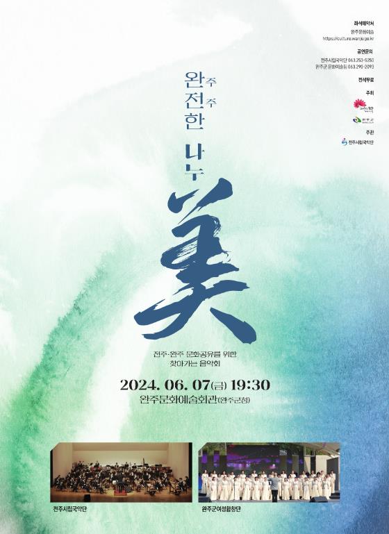 [뉴스서울] 완주군이 ‘완주-전주 상생을 위한 완전한 나누美’ 공연를 오는 6월 7일 오후 7시 30분 완주문화예술회관에서 개최한다.