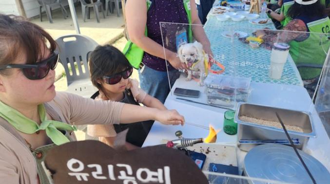 또한 페트병 뚜껑은 열쇠고리로 재탄생하는 과정을 함께 체험하며 미래 세대인 어린이들에게 소중한 탄소중립 실천 교육 활동이 되었고, 수거한 유리병은 열을 가해 목걸이로 재탄생하는 체험활동 펼쳐 참여한 반려견 가족과 자원봉사자 그리고 관광객에 큰 호응을 얻었다.