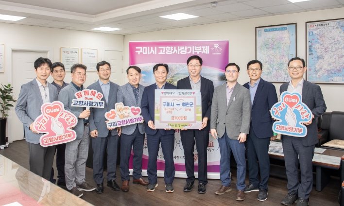 [뉴스서울] 구미시와 예천군은 11일 두 지역의 발전을 응원하며 고향사랑기부금 700만 원을 상호기부했다.
