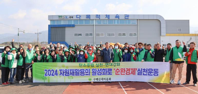 [뉴스서울] 구례군새마을회은 2024년3월20일 다목적체육관 앞 주차장에서 새마을회가 매년 실시하는 저탄소 녹색생활화운동으로 재사용(Reuse), 재활용(Recycle), 발생줄이기(Reduce)를 생활 속에서 실천하는 자원재활용품수집경진대회를 개최했다.