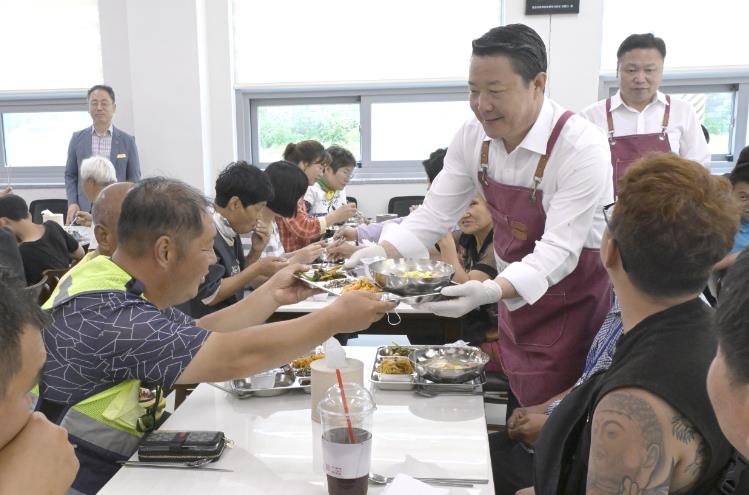 [뉴스서울] 최영일 순창군수와 손종석 군의회 의장, 군의원들은 지난 6일 순창군장애인복지관 찬누리 식당을 찾아 장애인과 보호자들이 건강하게 여름을 보낼 수 있도록 보양식 배식 봉사활동을 펼쳤다.