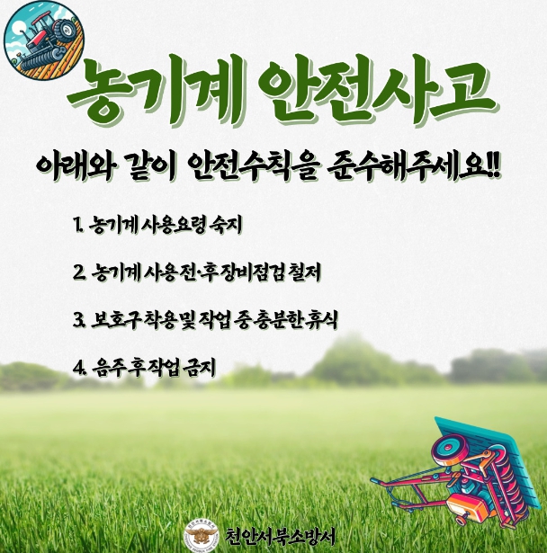 ▲ 천안서북소방서, 봄철 농기계 안전사고에 유의하세요! |