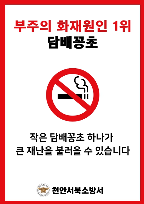 ▲ 천안서북소방서, ‘담배꽁초 화재’주의 당부 |