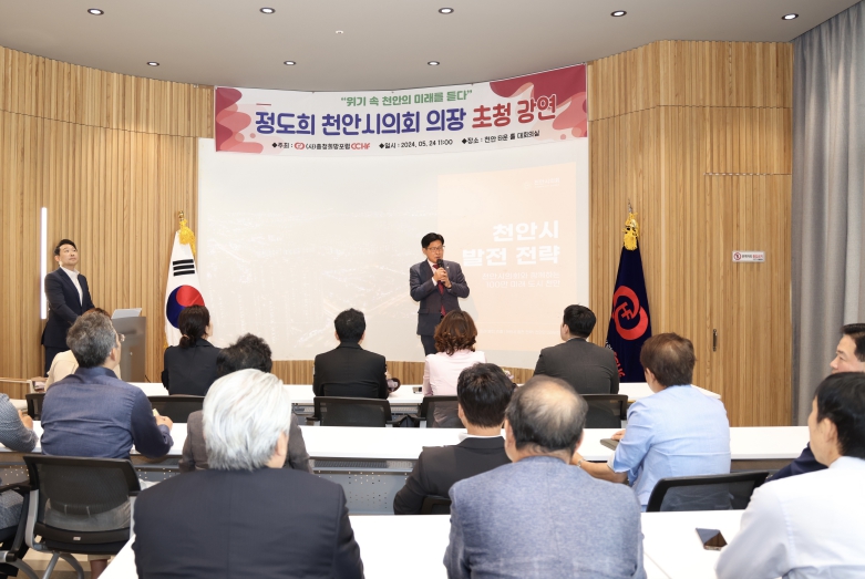[뉴스서울] 정도희 천안시의회 의장은 24일 천안타운홀에서 열린 사단법인 충청희망포럼에서 주최한 월례회에서 천안시의회 의장자격으로 “천안시 미래발전 전략”에 대하여 특강을 했다.