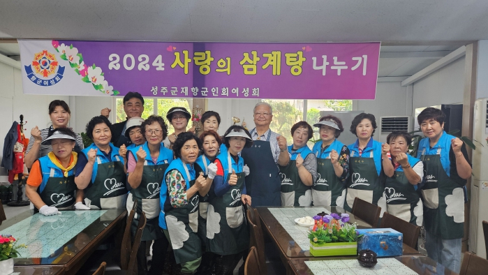 [뉴스서울] 성주군 재향군인회는 8월 12일 관운사 무료급식소에서 취약계층 어르신들을 위한 사랑의 삼계탕 나눔 행사를 개최했다.