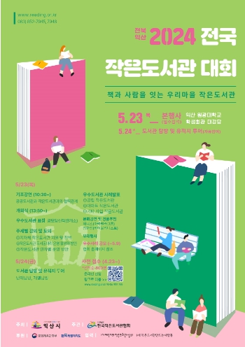 21일 익산시에 따르면 지방자치단체로는 최초로 '2024 전국 작은도서관 대회'를 오는 23~24일 원광대학교 학생회관 대강당과 숭산기념관에서 개최한다.