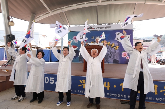 이 자리에서 황인홍 무주군수는 “4.1 무주만세운동은 내 나라, 내 고장을 지키고자 했던 우리 군민의 저력이었다”라며 “105년 전 우리 선조들의 마음이 앞으로 백 년, 또 천 년을 이어 후손대대 전해지길 바란다”라고 전했다.