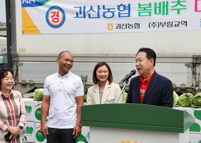 괴산농협배추작목반은 24일 괴산읍 농협 경제종합지원센터에서 괴산배추 대만 수출 선적식을 개최했다.