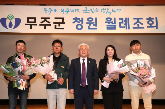이 자리에서는 민원봉사과 김성기 주무관과 의료지원과 정하나 주무관, 무풍면 박주남 주무관, 건설과 김민성 주무관이 1분기 우수공무원으로 선정돼 표창을 수상했다.