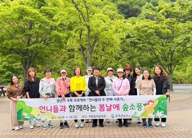 [뉴스서울] 칠곡군 보건소는 지난 26일 갱년기 극복 프로젝트 ‘언니들의 두 번째 사춘기’ 프로그램 참여자들을 대상으로 국립칠곡숲체원 연계 심리지원 힐링 프로그램을 실시했다고 밝혔다.
