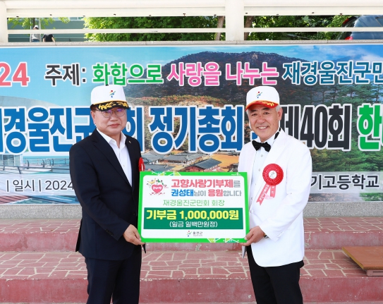 [뉴스서울] 울진군은 지난 27일 재경울진군민체육대회에서 권성태 재경울진군민회장이 100만원을 기부하며 고향사랑 기부제에 동참했다고 밝혔다.