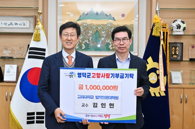 [뉴스서울] 영덕군 출신의 김인현 고려대 법학전문대학원 교수가 지난 10일 영덕군청에서 김광열 영덕군수를 만나 고향사랑기부금 100만 원을 기탁했다.
