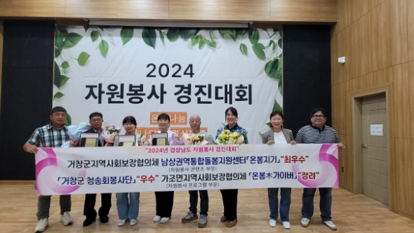 [뉴스서울] 거창군은 지난 9일 ‘온기나눔, 하나되는 경상남도’라는 주제로 개최된 2024년 경상남도 자원봉사 경진대회에서 최우수 1팀, 우수 1팀, 장려 1팀 등 3개 팀이 수상하는 영광을 안았다고 밝혔다.