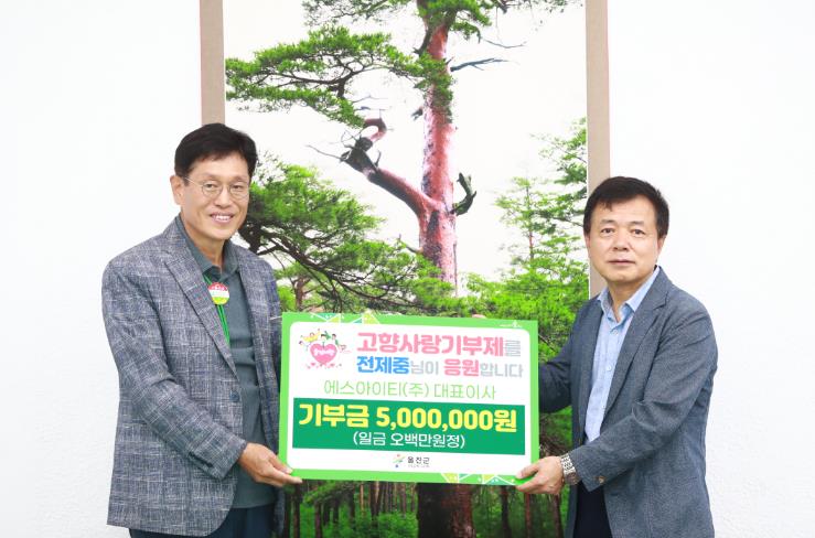 [뉴스서울] 울진군은 지난 6일, 울진읍 대흥리 출신으로 자동차 프레스 및 금형제조 사업을 하는 에스아이티(주) 전제중 대표가 울진군을 방문하여 고향사랑기부금 최고 한도액인 500만원을 기탁했다고 밝혔다.