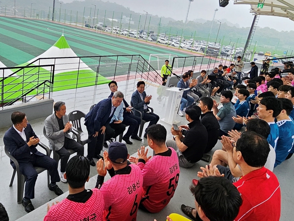 진병영 함양군수는 “축구는 남녀노소 누구에게나 인기 있는 스포츠로 체력과 투지, 개인의 능력과 조직력이 요구되는 운동”이라며 “오늘은 비가 많이 내리는 만큼 승부에 너무 연연하지 않고 부상 예방에 신경 써서 경기를 펼쳐 달라”라고 당부했다.