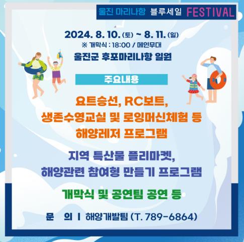 [뉴스서울] 울진군은 오는 10일부터 11일까지 본격적인 여름 휴가철을 맞아 맑고 투명하며 여유로운 청정 동해와 어우러진 후포마리나항에서 군을 찾는 관광객들이 즐길 수 있는 다양한 해양레저프로그램과 해양 관련 콘텐츠를 체험할 수 있는 행사를 개최한다.