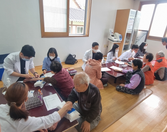 1차 방문 시 주민 21명을 대상으로 사업설명, 개인별 등록 관리 카드 작성, 기초설문 및 검사(혈액검사, 인바디), 찾아가는 결핵검진을 진행했다.