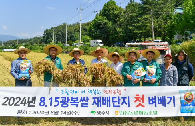 영주시는 아직 무더위가 한창인 14일 안정면 오계리 황순섭 농가의 논에서 ‘2024년 8·15광복쌀 재배단지 첫 벼베기 행사’를 개최했다.