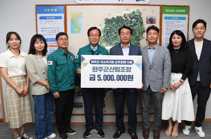 [뉴스서울] 완주군산림조합이 지난 22일 수해 지역 주민들을 위해 써달라며 500만 원을 후원했다.