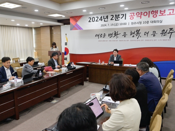 [뉴스서울] 원주시는 이달 19일 10시 시청 10층 대회의실에서 민선8기 2주년을 맞아 공약이행 상황 공개 및 점검을 위한 ‘공약 이행 보고회’를 개최했다.