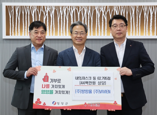 [뉴스서울] 8일 (주)쌍방울과 (주)비비안은 영양군을 방문해 사회복지시설 및 독거노인 등의 건강한 여름나기 지원을 위해 내의, 팔토시, 마스크 등(4천4백만원 상당)을 기부했다.