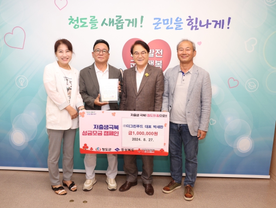 ㈜더그린푸드 대표 박세찬, 청도군 저출생 극복 성금 100만원 기탁