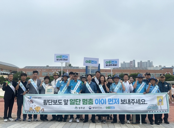[뉴스서울] 성주군은 27일 오전 8시 성주초등학교 주변 어린이보호구역 앞 횡단보도에서 어린이의 안전한 보행환경 조성을 위하여 ‘아이 먼저’어린이 교통안전 캠페인을 실시했다.