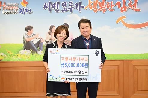 [뉴스서울] 김천시는 ㈜대영알미늄 송란덕 대표가 고향사랑기부금 최고 한도액 500만 원을 지난해에 이어 올해도 기탁하며 김천시를 응원했다고 23일 밝혔다.