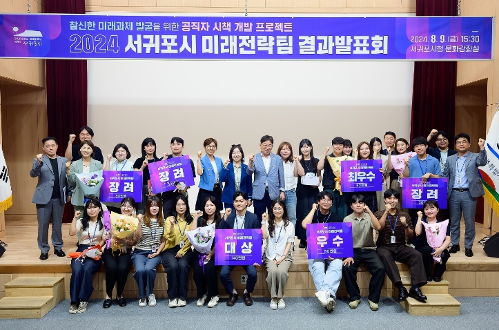 [뉴스서울] 서귀포시는 9일 서귀포시청 문화강좌실에서 서귀포시 공직자 150여 명이 참석한 가운데 '2024 서귀포시 미래전략팀 결과발표회'를 개최하고 시책 개발 우수팀에 대한 시상을 진행했다.