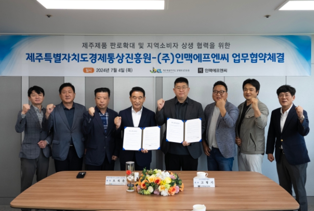 [뉴스서울] 제주경제통상진흥원과 (주)인맥에프엔씨가 7월 4일 제주 중소기업 및 소상공인의 판로 확대와 지역 상생을 위한 업무협약(MOU)을 체결했다.