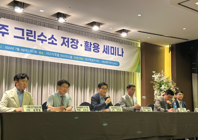 제주특별자치도와 제주테크노파크는 4일 오후 2시부터 6시까지 제주시 아스타호텔 아이리스홀에서 도내·외 전문가를 비롯해 제주도, 제주테크노파크 관계자 등이 참석한 가운데 ‘제주 그린수소 저장·활용 세미나’를 개최했다.