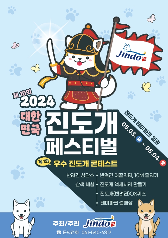 [뉴스서울] 진도군이 오는 5월 3일 금요일부터 4일 토요일까지 진도개테마파크 일원에서 ‘제10회 대한민국 진도개 페스티벌’을 개최한다.